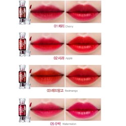 Тинт наносится равномерно на сухие губы, с помощью аппликатора. Пока консистенция высыхает, старайтесь не смыкать губы.