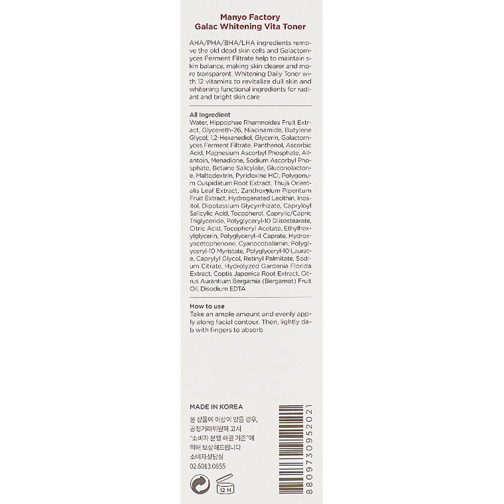Water, Hippophae Rhamnoides Fruit Extract, Glycereth-26, Niacinamide, Butylene Glycol, 1.2-Hexanediol, Glycerin, Galactomyces Ferment Filtrate, Panthenol, Ascorbic Acid, Magnesium Ascorbyl Phosphate, Allantoin, Menadione, Sodium Ascorbyl Phosphate, Betaine Salicylate, Gluconolactone, Maltodextrin, Pyridoxine HCI, Polygonum Cuspidatum Root Extract, Thuja Orientalis Leaf Extract, Zanthoxylum Piperitum Fruit Extract, Hydrogenated Lecithin, Inositol, Dipotassium Glycyrrhizate, Capryloyl Salicylic Acid, Tocopherol, Caprylic / Capric Triglyceride, Polyglyceryl-10 Diisostearate, Citric Acid, Tocopheryl Acetate, Ethylhexylglycerin, Polyglyceryl-4 Caprate, Hydroxyacetophenone, Cyanocobalamin, Polyglyceryl-10 Myristate, Polyglyceryl-10 Laurate, Caprylyl Glycol, Retinyl Palmitate, Sodium Citrate, Hydrolyzed Gardenia Florida Extract, Coptis Japonica Root Extract, Citrus Aurantium Bergamia (Bergamot) Fruit Oil, Disodium EDTA.