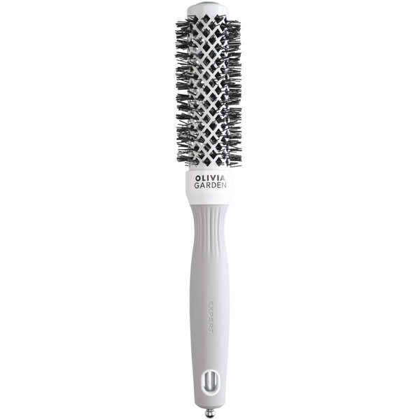 Olivia Garden Expert Blowout Shine White & Grey - це серія термобрашингів, призначених для створення укладки волосся. Вони доступні в різних розмірах: 20 мм, 25 мм, 35 мм, 45 мм, 55 мм і 65 мм. Однією з головних переваг цієї серії термобрашингів є їхня зручна безшовна конструкція. Завдяки цьому, вони легко ковзають по волоссю без ризику обірвати або пошкодити його. Керамічне напилення термобрашингів має негативно заряджені іони. Це дає змогу уникнути статичного ефекту, який може виникнути під час укладання волосся. Завдяки цьому, волосся стає гладким, без пушіння, і набуває дзеркального блиску. Щетина термобрашинга виготовлена зі спеціального термостійкого нейлону. Це означає, що щетина не втрачатиме форму або нагріватиметься під час використання з феном або іншими термічними інструментами. Корпус термобрашинга має отвори, які дають змогу проходити потоку гарячого повітря від фена. Це сприяє швидшому й ефективнішому сушінню й укладанню волосся.